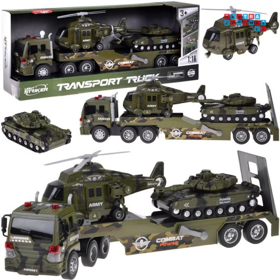 [ ZA5684 ] Zestaw Wojskowy Transport Ciężarówka Czołg Helikopter Światła Dźwięk