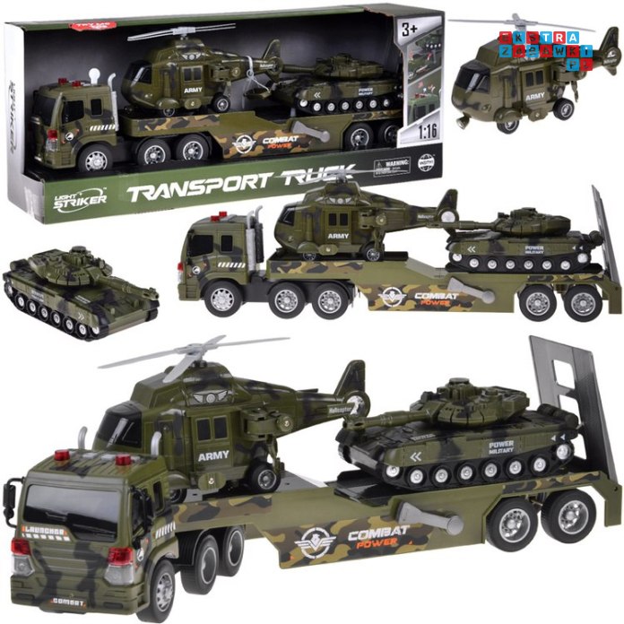 Zestaw Militarny Transport Truck – Czołg, Helikopter i Ciężarówka z Napędem Frykcyjnym!