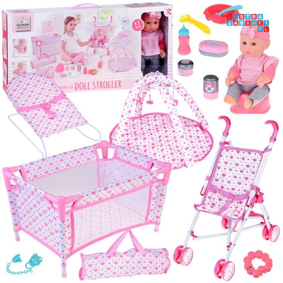 [ ZA5916] Zestaw Deluxe Lalka Bobas Wózek Łóżeczko Mata z akcesoriami 17 el.