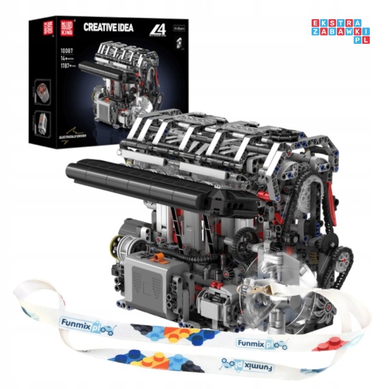 Zestaw klocków Mould King 10087 to idealny wybór dla każdego entuzjasty mechaniki. Pozwala na zbudowanie realistycznego, działającego modelu czterocylindrowego silnika benzynowego L4 z 1787 elementów. Model o wymiarach 32 cm x 23,4 cm x 20 cm wiernie odwzorowuje pracę prawdziwego silnika, w tym ruchome tłoki, wał korbowy i układ rozrządu. Dzięki wbudowanemu akumulatorowi i silnikowi elektrycznemu model ożywa, doskonale symulując mechanikę silnika.