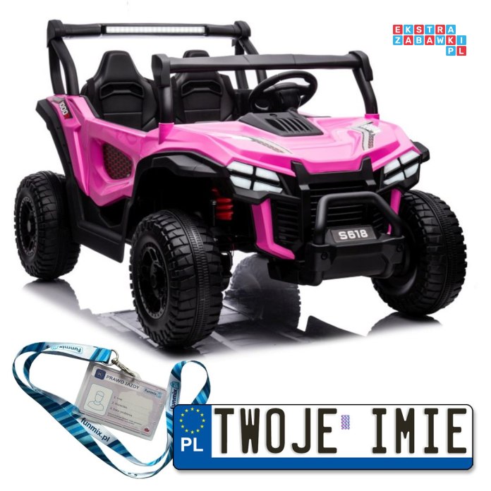 • [13545] Autko terenowe S618 4x4 na akumulator 4x45W 24V/7Ah ekoskóra koła EVA Bluetooth LED - różowe