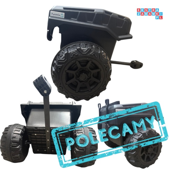 [BRJ.CZ] Uniwersalna przeczepa do pojazdów na akumulator wraz z uchwytem do montażu. Pasuje do więszkości autek, buggy i quadów na akumulator. Solidne zawieszenie wraz z dużymi kołami. W środku składne miejsce do siedzenia, a w zestawie są również łopatka i grabki.
