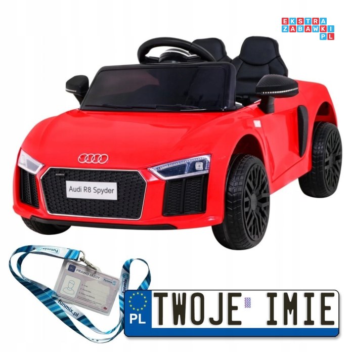 [HL1818] Audi R8 na akumulator 2x35W 6V/9Ah pilot EVA wolny start MP3 LED - czerwony
