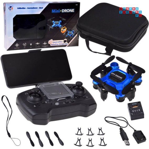 Model jest składany, dzięki czemu zajmuje bardzo mało miejsca w transporcie. W zestawie znajduje się eleganckie czarne etui zapinane na zamek, które chroni drona i ułatwia przechowywanie.