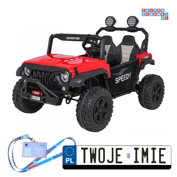 • [SX3568] Pojazd terenowy PASSION na akumulator 4x200W 24V/10Ah pilot EVA LED ekoskóra - czerwony
