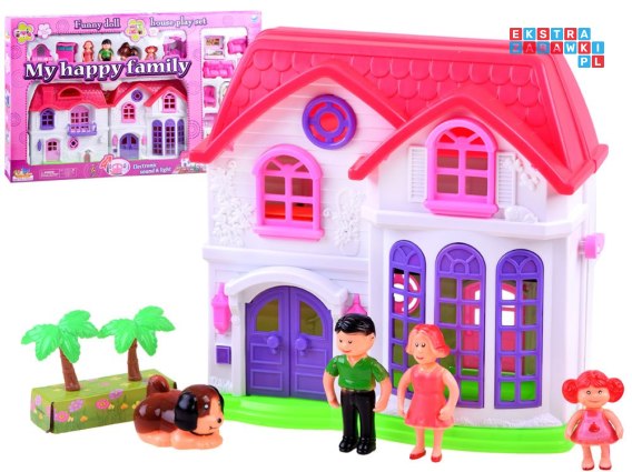 Rozkładany domek dla lalek z dzwonkiem i światłem to kompletny zestaw z 4 figurkami (rodzina i piesek) oraz bogatym wyposażeniem meblowym. Plastikowy domek o długości 48 cm (po rozłożeniu) zawiera kuchnię, salon, sypialnię oraz liczne akcesoria, jak huśtawka czy lodówka, które wspierają kreatywną zabawę w dom. Wybierz ten interaktywny zestaw od Jokomisiada – to idealny, bezpieczny prezent dla dzieci, który uczy ról społecznych i pozwala na samodzielną aranżację wnętrz dzięki dołączonym naklejkom!