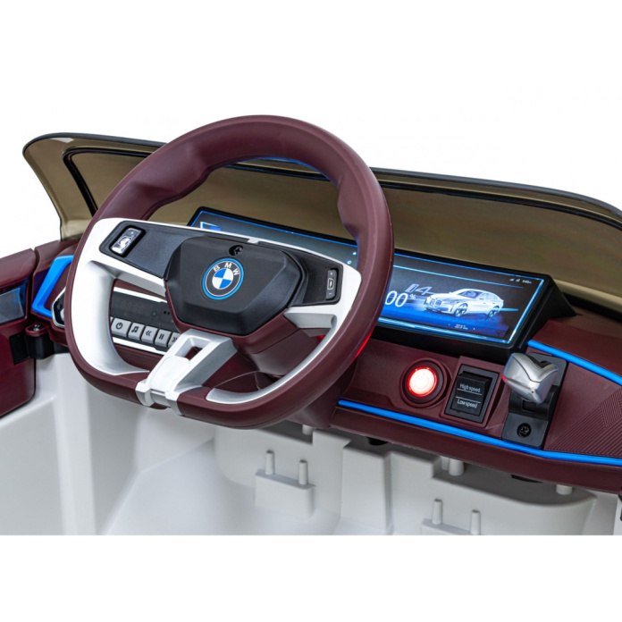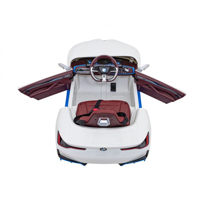 Elektryczny BMW i4 to nie tylko pełen stylu i detali pojazd. Jest także gwarancją bezpiecznej zabawy dzięki pasom bezpieczeństwa przy siedzeniu i kołom z pianki EVA. Funkcja Wolny Start eliminuje nagłe ruszanie, zapewniając płynne i kontrolowane przyspieszanie. Dodatkowo rodzice mogą zachować pełną kontrolę dzięki pilotowi zdalnego sterowania, który umożliwia kierowanie autkiem i zmianę prędkości jazdy.