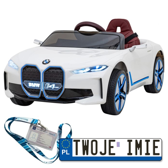 Autko BMW i4 na akumulator dla dzieci Biały + Wolny Start + EVA + Ekoskóra + Audio LED + Pilot [PA.JE1009.BIA]