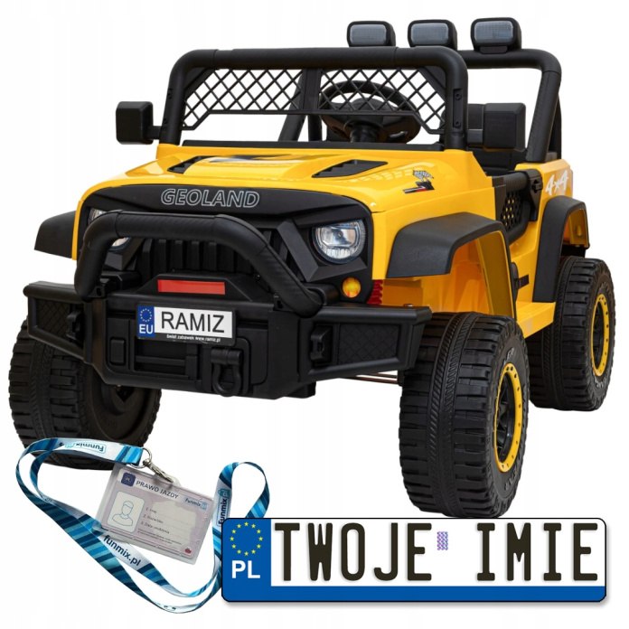 Autko terenowe Geoland Power dla 2 dzieci Żółty + Pilot + Silniki 2x200W + Bagażnik + Radio MP3 + LED [PA.BRD-2108.ZOL]