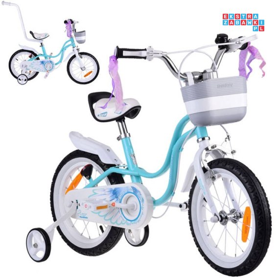 RoyalBaby uroczy Rower 14" Little Swan wstążki koszyk kółka boczne RB14-18