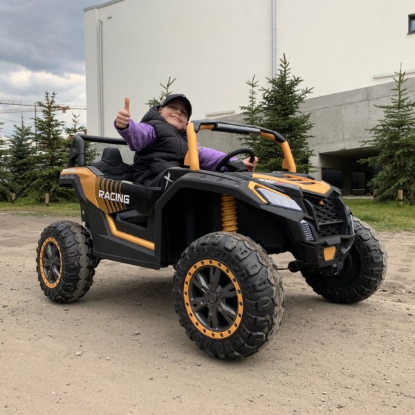 Następną propozycją samochodu dla dziecka jest BUGGY UTV MX 24V XMX 613. To atrakcyjny pojazd dla dzieci, zaprojektowany z myślą o młodych entuzjastach jazdy, oferując realistyczne doświadczenie kierowania. Wyposażony w 24V akumulator, zapewnia długie godziny zabawy. Charakterystyczne dla tego pojazdu są jego wytrzymała konstrukcja i stylowe wykończenie, które odwzorowuje prawdziwe pojazdy terenowe. Dodatkowe funkcje, jak światła i dźwięki, zwiększają atrakcyjność zabawki.