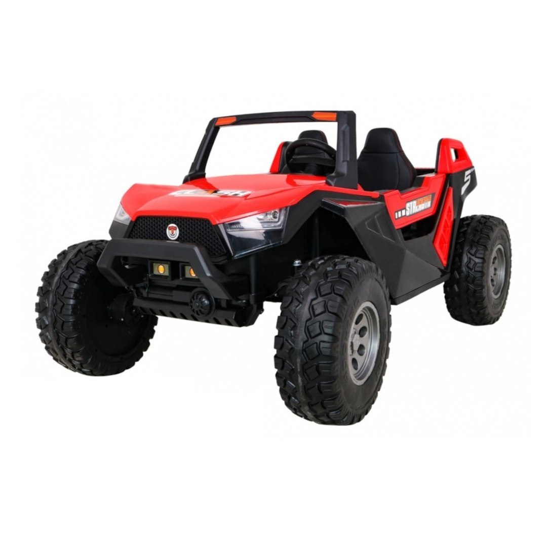Kolejną propozycją idealnego autka na akumulator jest Buggy Clash Challenger SX1928 - imponujący, duży samochód elektryczny dla dzieci, zapewniający ekscytującą zabawę z możliwością jazdy terenowej. Autko jest dwuosobowe, co oznacza, że może pomieścić dwoje dzieci, zapewniając im wspólną zabawę. Cechuje się dużą mocą dzięki napędowi 4x4, z przednimi kołami napędzanymi dwoma silnikami o mocy 60W i tylnymi napędzanymi przez dwa silniki 200W. Taka konfiguracja sprawia, że każde koło jest napędzane niezależnym silnikiem, co czyni pojazd wyjątkowo mocnym i zdolnym do pokonywania różnorodnych przeszkód terenowych.